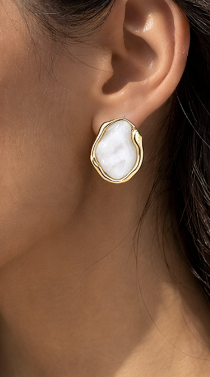 Σκουλαρίκια σε χρυσό τόνο με λευκό κέντρο.