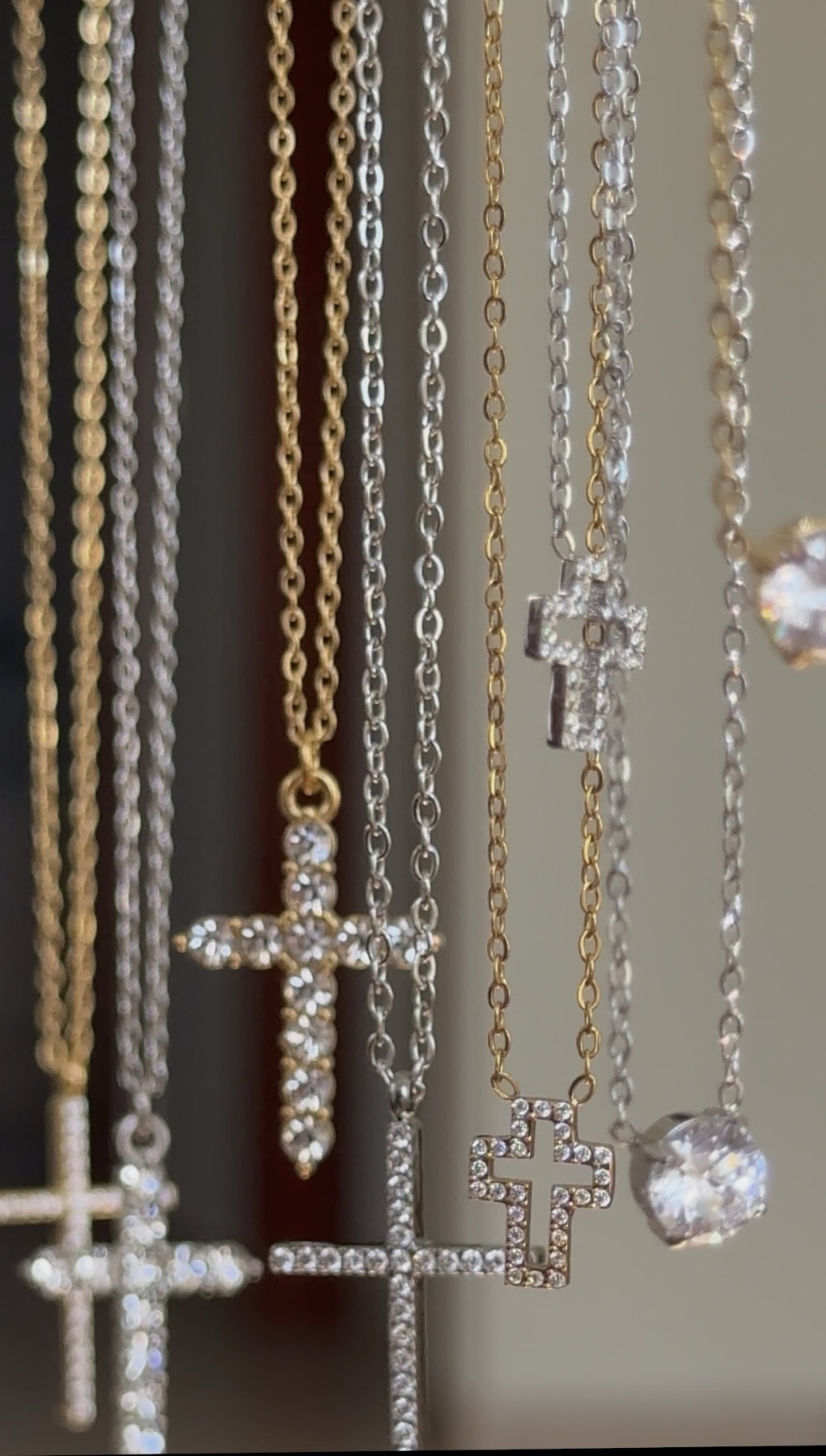 Λεπτό κολιέ με μικρό σταυρό διακοσμημένο με πέτρες ζιργκόν.