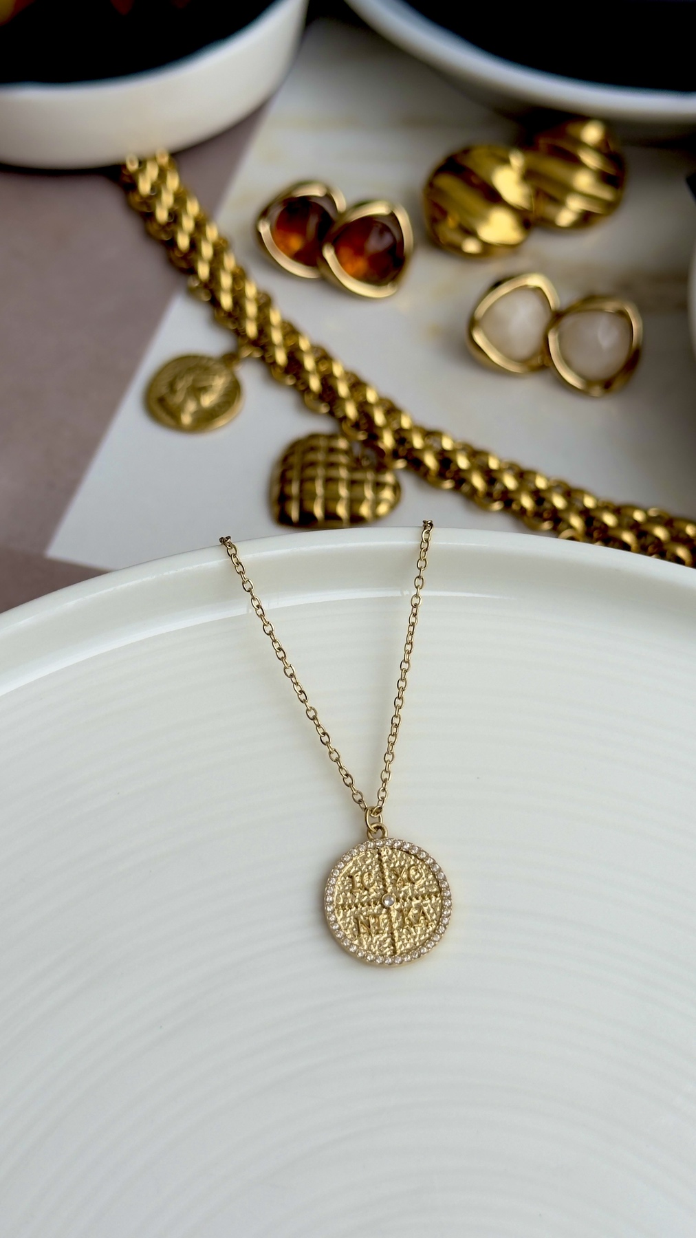 Κλασικό κωνσταντινάτο σε στρογγυλή μορφή με διακριτική λάμψη. Διαχρονικό φυλαχτό που φοριέται καθημερινά μόνο του ή σε layering και αποτελεί ιδανικό δώρο!